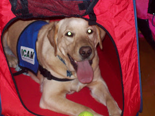 Although he likes being at work, he isn't sure how he feels about getting up at 6am each day (and usually goes back to sleep for another half an hour while I am getting ready...sleepyhead!). Since we get there before the office opens, we take advantage of the long hallway for some "fetch" and "find" time. We also do some training; boundary training at the door to my office and sending him to his "bed" on command are the first things on the list. Who knows what we'll move on to after that...I'm thinking answering the phone or typing emails so then I can be the one to take the afternoon naps!